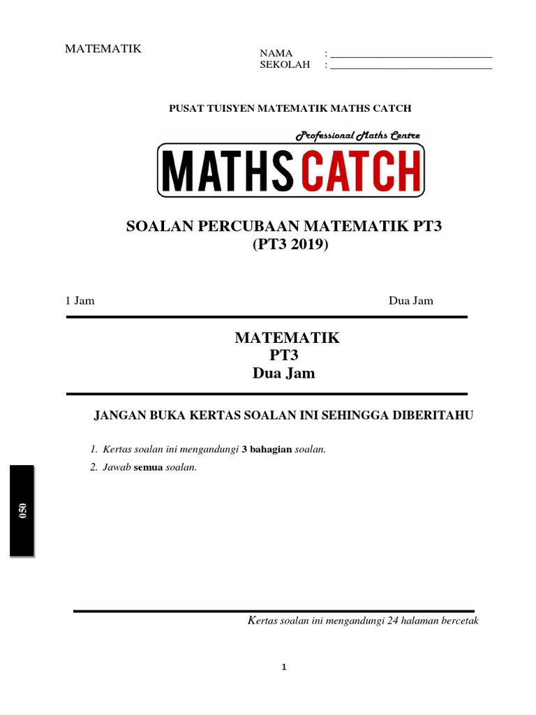 Soalan Matematik Pt3 2019 / Koleksi kertas soalan peperiksaan percubaan matematik (mathematics) pt3 2020, 2019, 2018, 2017 + skema jawapan.