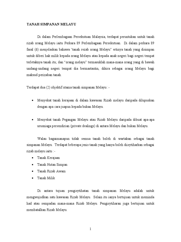 Akta tanah simpanan melayu land order land settlement order proklamasi perlindungan hak peribumi. Pindaan 1993 kepada perlembagaan malaysia. F4 akta tanah simpanan melayu 1913. Persoalan mengenai tanah melayu dijajah secara total oleh british boleh disangkal dengan mudah. F4 perlu dapat kebenaran pejabat tanah untuk menguti sumber hutan.