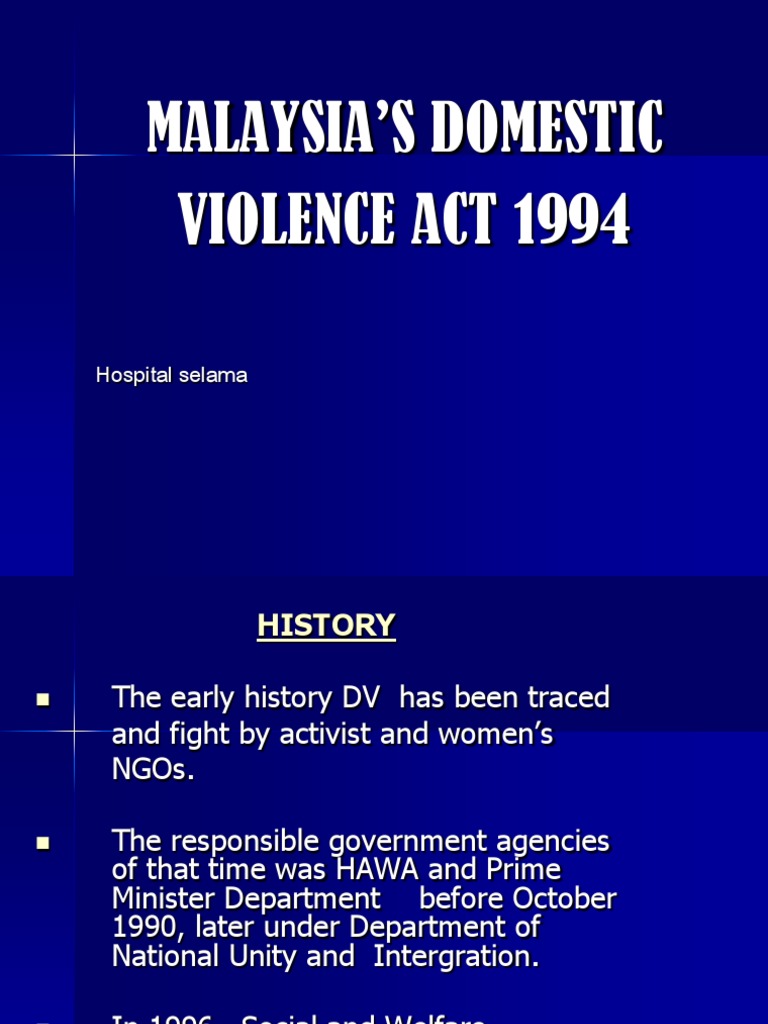 Domestic Violence Act 1994 - Domestic Violence Act 1994 Federal Government Gazette / [ 1 june 1996, p.u.. 3 wilfully or knowingly placing, or attempting to place, the victim in fear of physical injury; In 2005, almost 1,181 women were murdered. Short title, application and commencement. And for matters connected therewith. P art i preliminary short title and application 1.